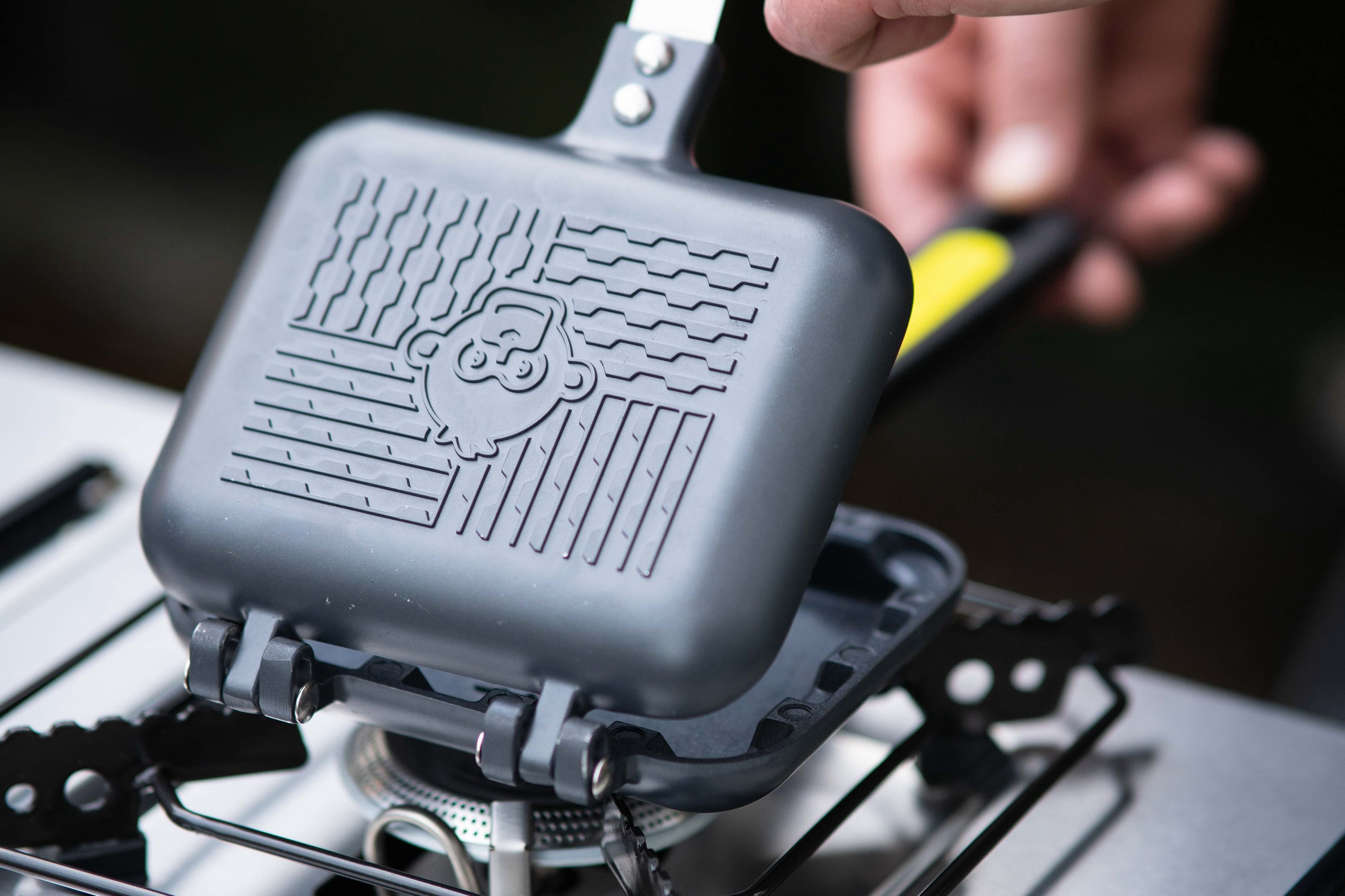 Create your own delicious sealed and stuffed parcels on-the-go with the CrimPanZee toaster pan. With cool-touch handles, a unique adjustable sliding hinge, and an interlocking crimped edge, crafting perfectly piping-hot pockets of goodness has never been easier.